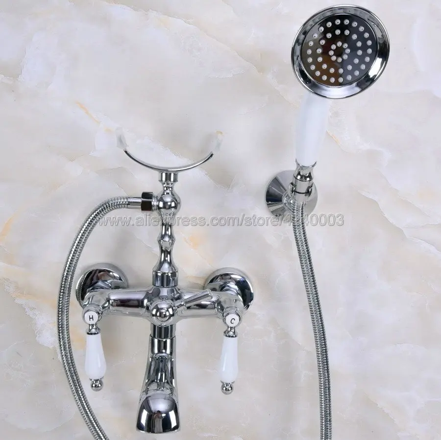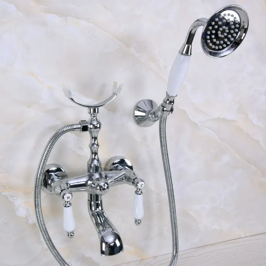 Chrome Brass Wall Mount Telephone Euro Bath Tub Faucet Mixer Tap w/ Handheld Spray Shower Kna238