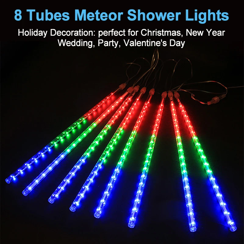 TOP 8 Tube Christmas Fairy Lights Led String Lights Meteor Shower Rain Light Outdoor Decoration Street