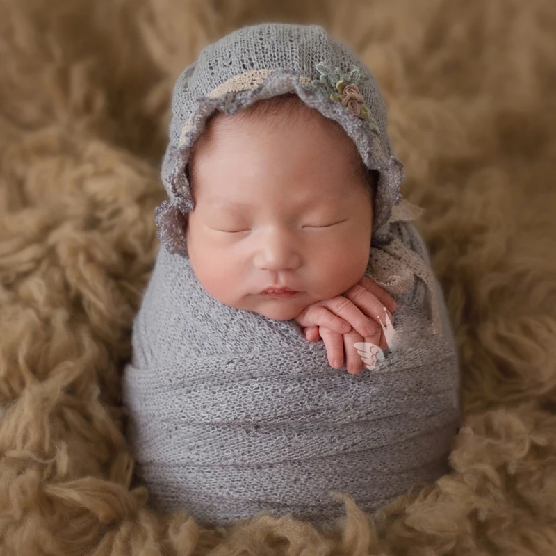 Newborn Photography Props Baby Crochet Costume Photo Caps Stretch Blanket Set baby shower gift phot